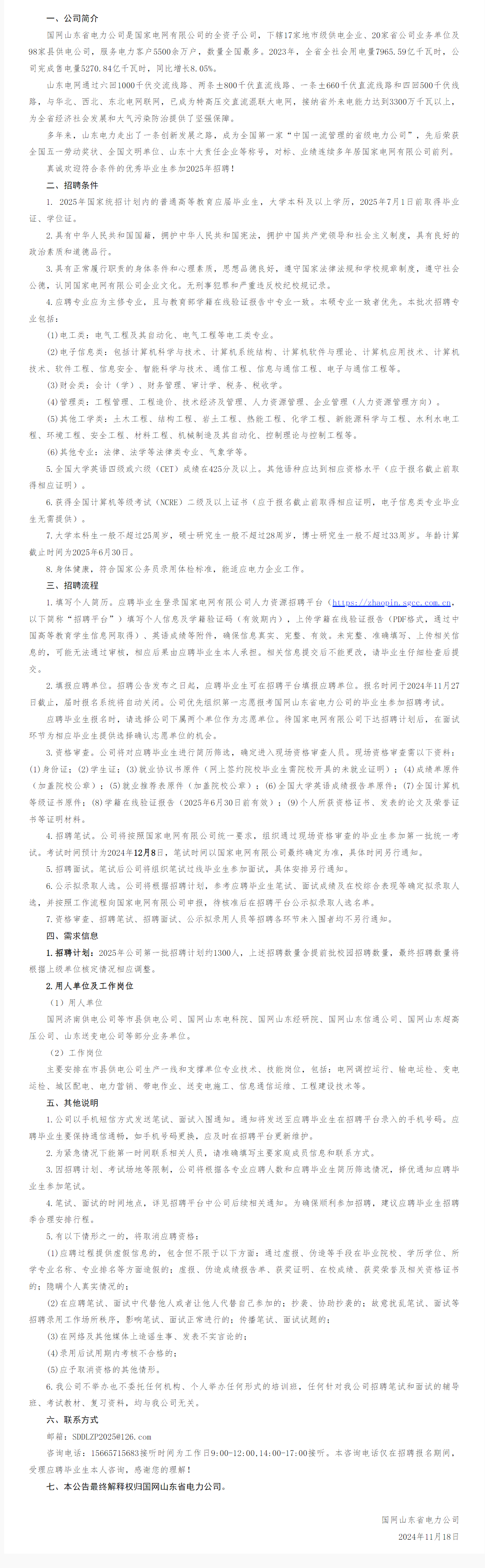 2025年国网山东省电力公司招聘高校毕业生公告(第一批)