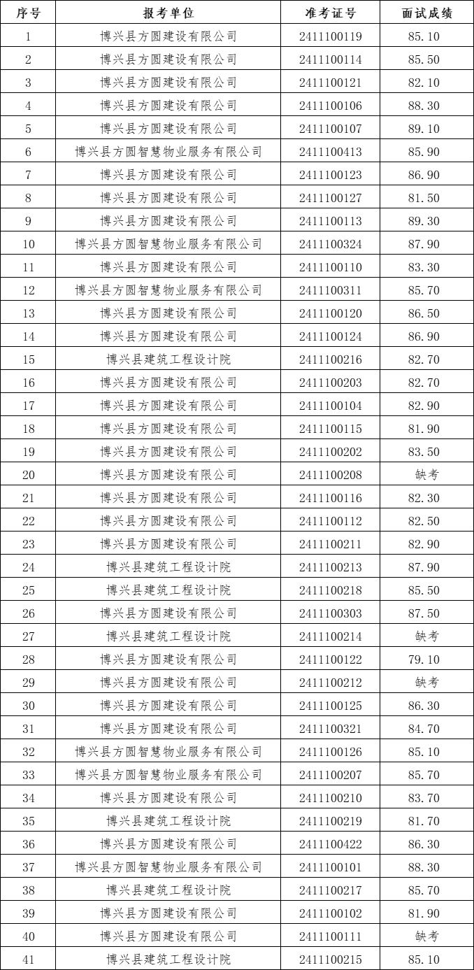 原文标题:博兴县城建集团有限公司权属企业公开招聘工作人员面试成绩公布