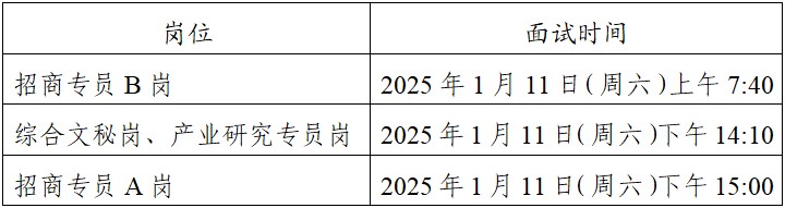 2.考生需携带本人身份证(临时身份证)、笔试准考证、毕业证、学位证原件及复印件,且招商专员A岗需携带英语相关等级证书原件及复印件参加面试。除身份证(临时身份证)外,其他证件无效(包括电子身份证)。