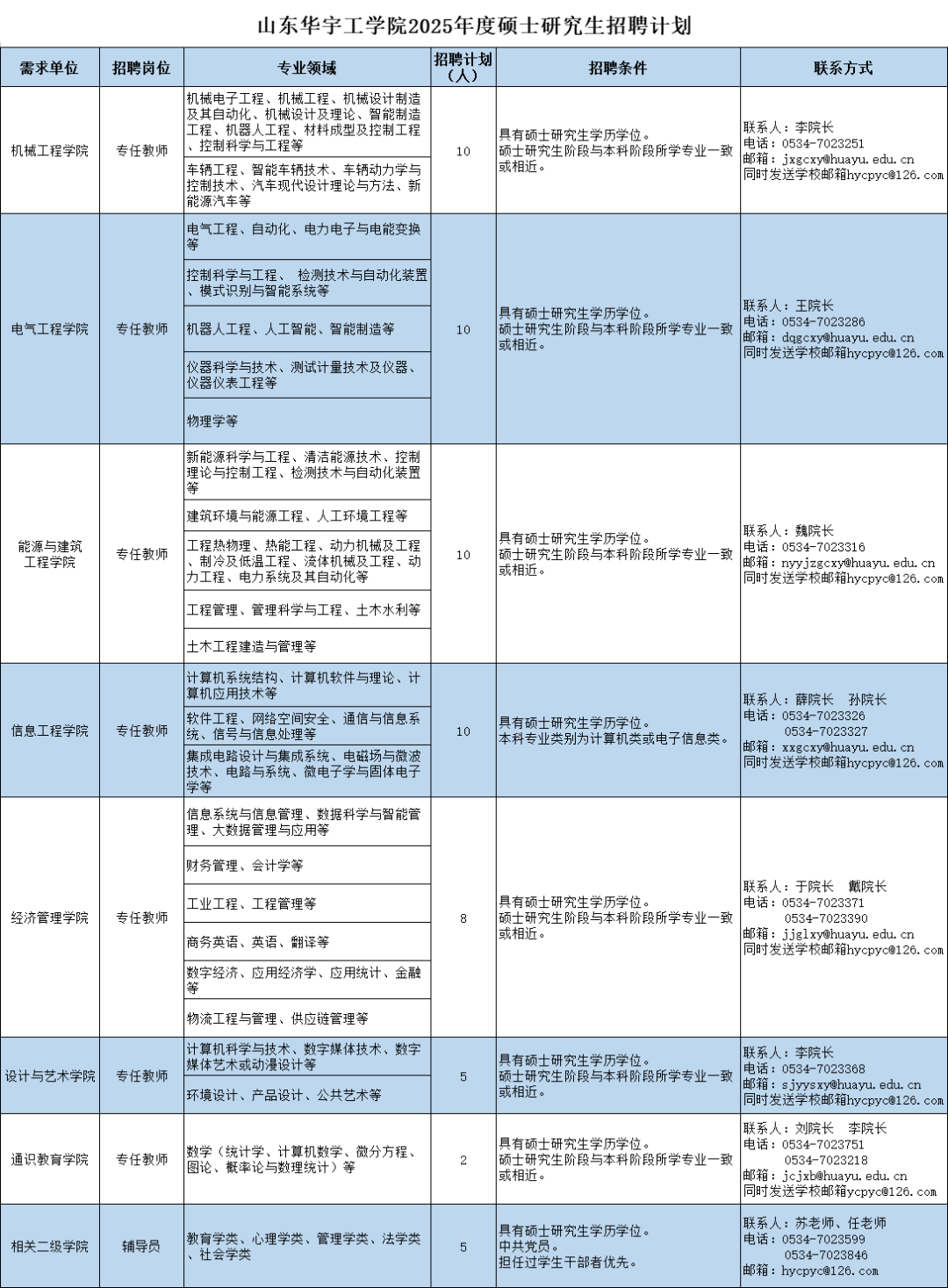 山东华宇工学院2025年度硕士研究生招聘公告(60人)