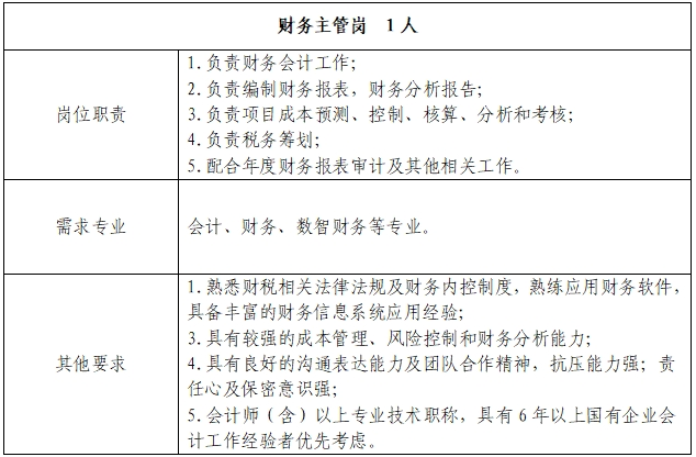 因业务需要,现进行公开招聘,有关事项公告如下: