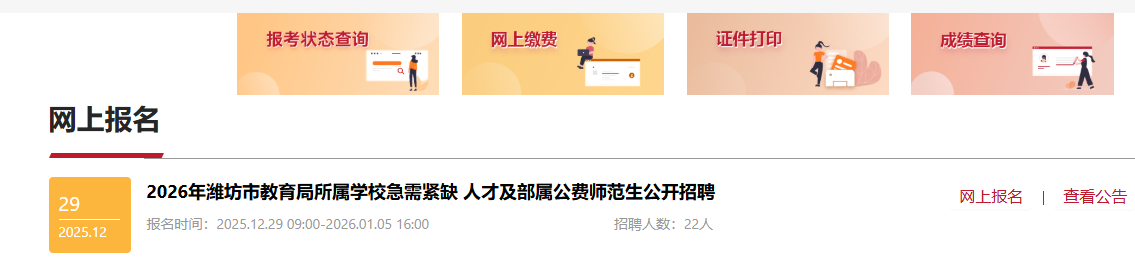 原标题:2026年潍坊市教育局所属学校急需紧缺人才及部属公费师范生网上报名入口