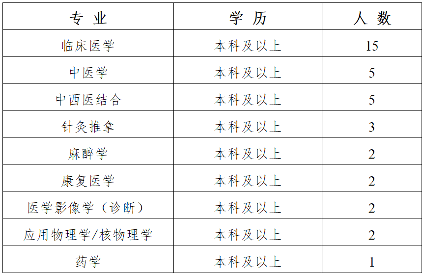一、报名条件 1.具有中华人民共和国国籍; 2.遵守中华人民共和国宪法和法律,拥护中国共产党领导和社会主义制度; 3.身心健康,热爱卫生事业; 4.具有良好的道德品行和适应岗位的身体条件、心理素质; 5.全日制普通高校本科及以上学历的应届毕业生;非应届毕业生需持有执业医师资格证(择业期内未落实工作单位的毕业生除外);年龄在35周岁以下(1991年1月1日以后出生); 6.定向、委培毕业生报考,须征得定向、委培单位同意;现役军人,在读的非应届毕业生,不得应聘。在读且学习形式为全日制的非应届毕业生不能用已取得的学历学位作为条件应聘。 二、各岗位需求人数 三、报名方式及时间 报名时间: 即日起开始报名至2026年6月10日止。 报名方式: 1.参加医院的校园招聘双选会; 2.微信扫描以下二维码进行报名。 四、考试时间与形式 医院拟在2026年5-6月份进行招聘考试,届时统一通知符合条件的报名人员来院参加考试;考试采取面试和笔试的方式进行,均采用百分制计算成绩,考生按笔试成绩60%、面试成绩40%的比例择优录取。 五、体检 按照招聘岗位,根据应聘人员考试总成绩,由高到低确定进入体检、考察范围人选。体检费用自理,应聘人员未按规定时间、地点参加体检的,视为自动放弃。对按规定需要复检的,复检只能进行1次,结果以复检结论为准。 六、有关待遇 1.薪酬高于昌乐县同等类型医院,待遇从优; 2.享受五险一金、年度免费体检、用餐补贴等员工福利; 3.人才引进补助:符合当地申报条件的发放相关人才补助,具体以当年潍坊市及当地相关政策为准; 4.入职后提供参加国内培训、进修、学术交流等机会。 七、联系方式 通讯地址: 山东省昌乐县恒安街323号 咨询电话: 0536-6233708 李老师 刘老师 “职”等你来!